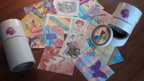 It is reusable, repositionable, low tack and made in the USA. The tape is available in a seven inch roll that is perfect for masking any size stamp, and in a variety pack of three versatile sizes. Use the tape to make masks that stay in place, anchor your templates and reverse images with ease. See Darlenes video, COLOR CONVERSATIONS, for instructions on how to use STAMPLAND ART TAPE and BUFFY BRUSHES to create mosaics, grids, gradations, plaids, shadow boxes and frames. It is easy and fun and the results are amazing. |